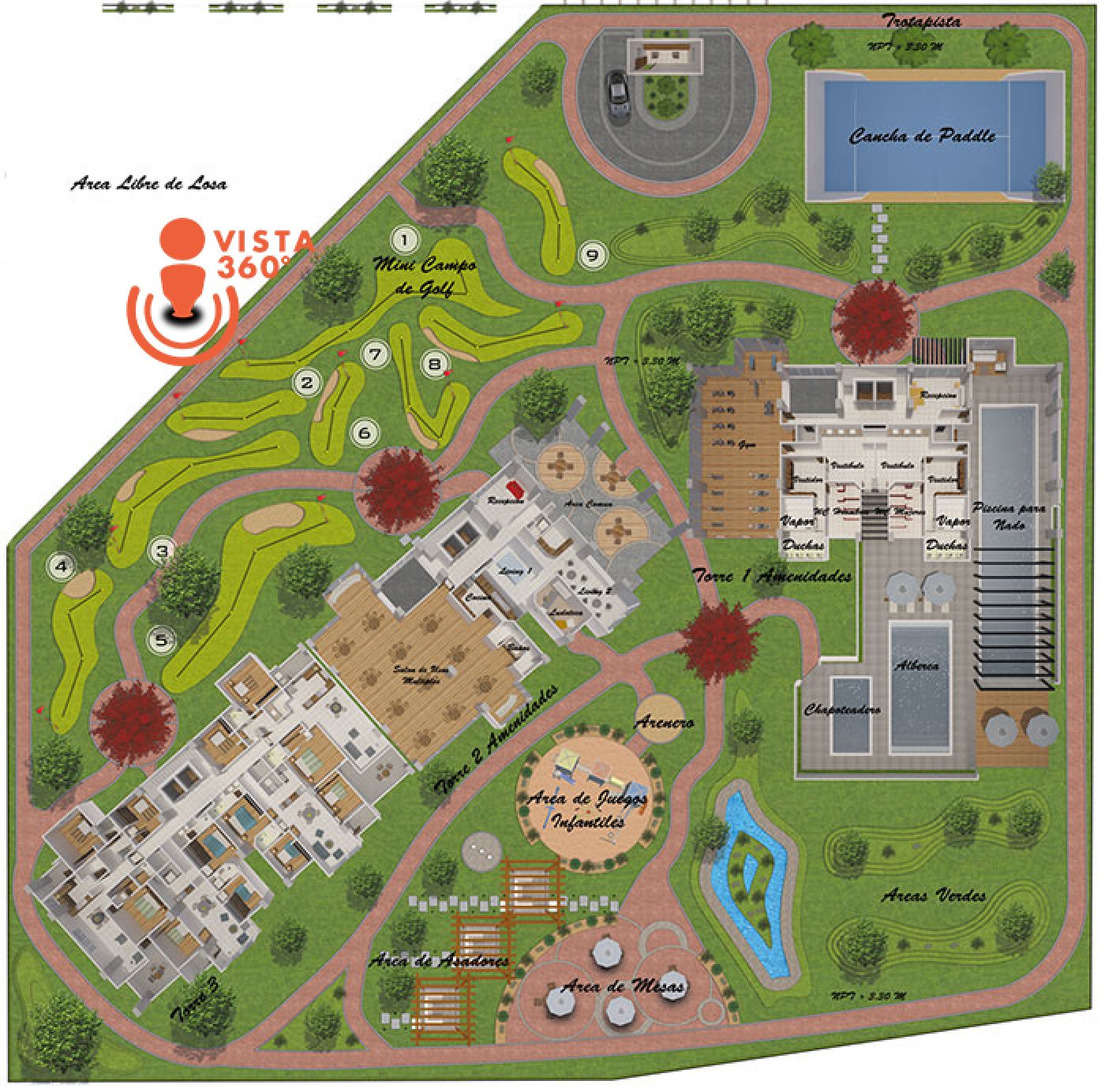 LA CIMA TOWERS te ofrece experiencias únicas, con más de 1,000 m² de amenities, integrado por Área de albercas, Jardines espectaculares, Mini campo de golf, Espejo de agua, Asadores, Pista de jogging, GYM, Terrazas, Áreas de usos múltiples, Cancha de Paddle, Areneros, Ludoteca y mucho más.